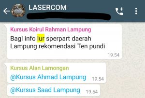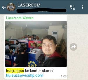 Apakah setelah selesai kursus peserta masih bisa berkomunikasi dengan trainer? Tentu saja bisa, karena peserta akan dimasukkan group support Whatsapp selama pelatihan dan pasca pelatihan. Peserta boleh menanyakan permasalahan tentang handphone di group Whatsapp tersebut kepada trainer atau sesama peserta/alumni. Alumni juga diperbolehkan datang ke Lasercom jikalau ada permasalahan yang tidak bisa dijelaskan via online. Peserta luar daerah diberikan mess yang jadi 1 dengan tempat kursus sehingga dapat belajar dan memanfaatkan fasilitas selama 24 jam full. Peserta bebas menyiapkan dan membawa berapapun permasalahan handphone untuk dikerjakan di tempat kursus.